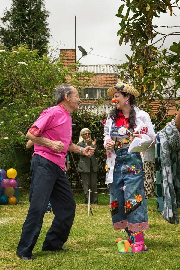 “Esta es mi segunda casa porque todos son mis amigos, conozco a todo el mundo y todo el mundo me conoce a mí conto” José Hernández, un miembro de 83 años que disfruto de las presentaciones culturales, la comida y el acompañamiento de La Fundación Doctora Clown Colombia, que los divirtió ese día.